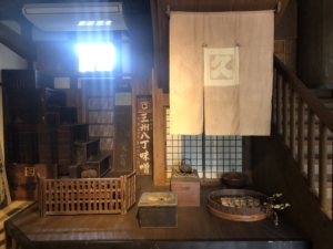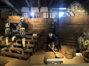 明治40年に建てられた建物が現在資料館となっていて、人形で昔ながらの味噌造りを再現していました。