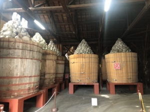 現在も味噌を熟成するのに、桶の上に手積で石を積み、しかも地震が起きても今まで崩れたことが無いそうです。