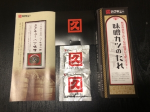 カクキューさんで購入した味噌カツのたれと見学記念に頂いた八丁味噌の粉末