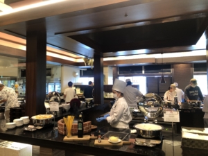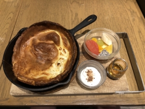 朝食付きのプランでしたのでイタリアンレストラン兼ロビーに行って注文。 ここの朝食は選べる朝食、何種類かのメニューから妻は大人気のパンケーキ、私はサンドイッチを選びました。 メイン1品+惣菜2品+ドリンクリフィルとボリュームたっぷりの朝食でした。 今回のホテルの食事は大満足👏👏👏でした。