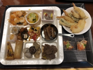 レストランと食事の一部  妻は沖縄に行ったらダイエットすると言いながら、色々な種類の料理を沢山持ってきてたべていました😅😅😅。 美味しくダイエット中止との事でした。 締めにアイスクリームを食べ、コーヒーで一息ついて終了。 またまた大満足の食事でした。 二人で「我が家はダイエットは無理だね・・・!?」といってレストランを出ました。