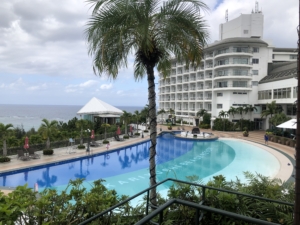 リゾートホテルらしく大きなプール。 残念ながら天候が悪く誰も泳いでいませんでした。