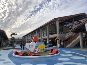 道の駅「豊崎」から数分のショッピングモール「イーアス沖縄豊崎」。 昨年来た時はコロナ下なのにかなり混んでいましたが、今年はひっそりとして閉店しているショップもありました。 残念ですね~。 また隣接しているレストランDMMかりゆし水族館も観てみましたが入館数も少ない様に見えました。