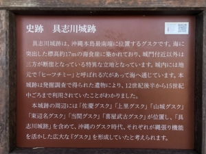 昨年殆どの観光地は見ているので、時間もタップリあるので行き当たりばったりの観光地巡りをしようと思い糸満の道の駅を出発。 グーグルマップで昨年行っていない具志川城跡を見つけ、その場所に行く事にしました。  無名かと思っていたら日本中のあちこちからからの観光客が来ておりビックリ。 妻曰く、最高の場所と絶賛していました😃😃😃。