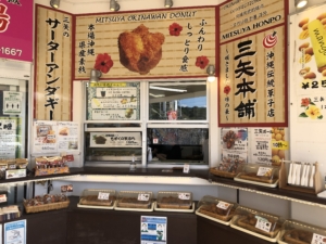 がんじゅう駅・南城  知念岬の入口に位置しておりさまざまな沖縄をたいけんできる場所。  ここで昨年と同様に三矢本舗のサーターアンダギーを購入。 美味しく頂きました。 売店には沢山の沖縄のお土産があって観光客が手に取って買い求めていました。