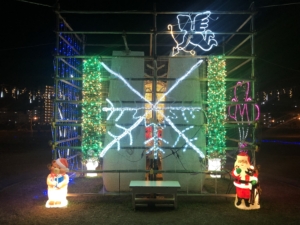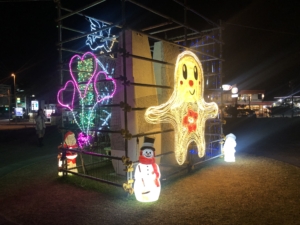 与那古浜公園  昨年この公園の前にあるきらきらビーチで夜中に起こされ、ビーチの駐車場から出された苦い思い出の地です😨😨😨。  昨年は何も分からず車泊していたら、雨の中ドアを叩かれ「ここのゲートを閉めるので出て言って下さい。」と言われ与那古浜公園に移動した経緯があります。 「朝まで移動しないのでいても良いのでは・・・?!」と言ったのですが「絶対ダメ」と言われ雨の中、駐車場を探して見つけた場所。 道路沿いで目の前が運動場・直ぐ側に駐在所が有って最高の場所でした。 今回行ったら公園の休憩所や入口がイルミネーションで飾られていてとても良かったです。