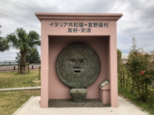 イタリヤの観光スポットとして有名な「真実の口」。 沖縄サミットにイタリアの首相が訪れた記念に建てられたそうです。 男女の小さい兄弟がいて、女の子が手を入れたので「嘘をついたら手を嚙まれるよ」と言ったら「そんな事ない!」といって笑っていましたが男が子は絶対手を入れませんでした😅😅😅。 男の子は何時もうそをついているのかな~ハハハハハ。