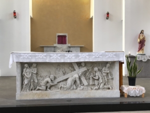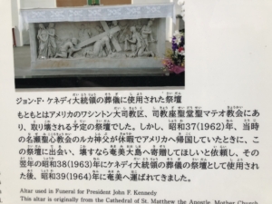 名護聖心協会 奄美には沢山のキリスト教会が多く、島内を観光していると各所で教会を見る事ができました。 その中でもこの教会には故ジョンFケネディ大統領の葬儀の時に使用された祭壇が有りました。 協会の方に言って拝見させて頂きました。