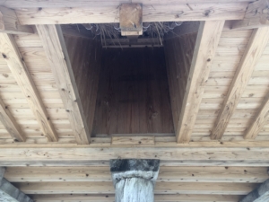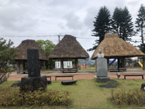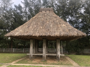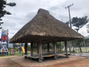 龍郷町のとおしめ公園 園内に奄美特有の『高倉』が有りました。 奄美型高倉は、沖縄型に比べて、屋根の勾配が急で壁の傾斜はほぼ水平に近い点が特徴だそうです。