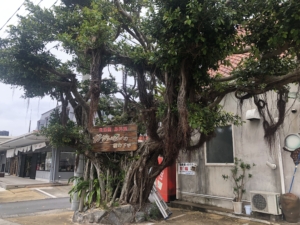 みなとや鶏飯とガジュマルの木の下で(レストラン) 地元では鶏飯が美味しいと言う『みなとや』さんに来ましたが、残念ながら臨時休業でした😥😥😥。