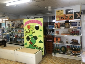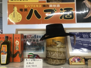 奄美観光ハブセンター 丘の上にひっそりと建っている観光センター、世界でも珍しい蛇ハブとマングースのショーを放映、ハブの正しい生態など紹介していました。 私達が行った時にはお客様も居なく、店員さんが暇そうにしていて、ハブ皮を使った革製品、健康食品,ハブ酒などの説明をしてくれたので申し訳なくハブ酒(小瓶)を1本購入して帰りました。