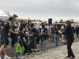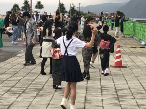夕方6時にクルーズ船が出港。 港では島歌や島踊りで盛大に見送りをしていました。 出港時に船尾に大きな手・・・!? 船員さんが作った大きな手の内輪でした😅😅😅。