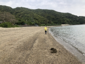 清水の浜  古仁屋市街から一番近い海水浴場で奇麗なトイレとシャワー施設があり、地域のPTAでBBQをしたり海水浴をしていました。 私達は散策しながらこの海辺で沢山の種類の貝殻を拾うことができました。  夕方雨が強くなって来たので今夜の宿はこの海岸に決定、就寝💤💤💤。