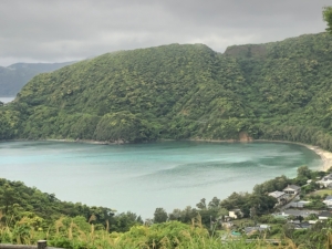ハートがみえる風景  高台から海岸の入り江を見るとハート型の湾内が見えました。