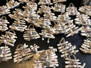 毎日雨が続いていたので、妻が拾った貝殻で朝から貝殻細工をしていました。 中々のできばいで😀😀・・・良くできていると思います💞💞💞。