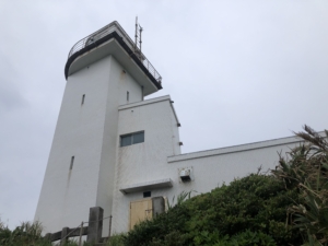 笠利崎観光公園と笠利崎灯台 アヤマル岬から北に約20分程度で到着。 灯台の手前約300mに「夢をかなえるカメさん」がありました。 細いチェーン付手すり階段を注意しながら登ると灯台がありました。