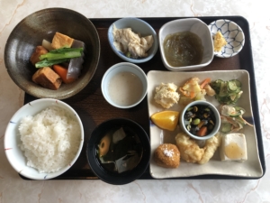 明日、奄美大島を離れる前に必ず行こうと思っていた島豆腐屋(有限会社高野食品)。 お店に到着したらすでに十数組の観光客が外で待っていました。 車の車番を見ると「わ」「れ」のレンタカー数十台駐車して、地元客より観光客が訪れる豆腐専門店のレストランでした。 この店の特徴は席についてから注文後、湯豆腐と豆乳などが食べ放題。 食べ放題大好きの私には堪らないお店で・・・・メーンの食事が来た時にはお腹一杯でした😅😅😅。