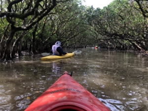 折角奄美に来たので満潮の時間(干潮の場合はマングローブのトンネルに入れないので)を選んでカヌー体験をすることにしました。 ライフジャケットを着て、簡単なパドルの漕ぎ方と注意事項を聞いた後、早速カヌーに乗りマングローブの森へ。 マングローブのトンネルの川をカヌーで通ったり、急流に逆らって漕いだり今まで体験した事の無い楽しい時間を過ごしました😀😀😀。