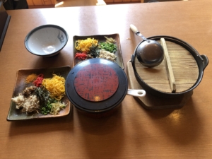 鶏飯のひさ倉 奄美大島の郷土料理の鶏飯屋さんで3つの指に入る人気店です。 ご飯に具をのせて、鶏ガラスープの汁を入れてたべます。 流石に人気店沢山の観光客で一杯でした。
