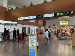 奄美空港 サンゴ礁に囲まれた美しい空港、現在東京、大阪、福岡、鹿児島、沖縄などから定期便が運行されており、小さい空港でしたが沢山の観光客で賑わっていました。