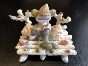 毎日雨が続いていたので、妻が拾った貝殻で朝から貝殻細工をしていました。 中々のできばいで😀😀・・・良くできていると思います💞💞💞。